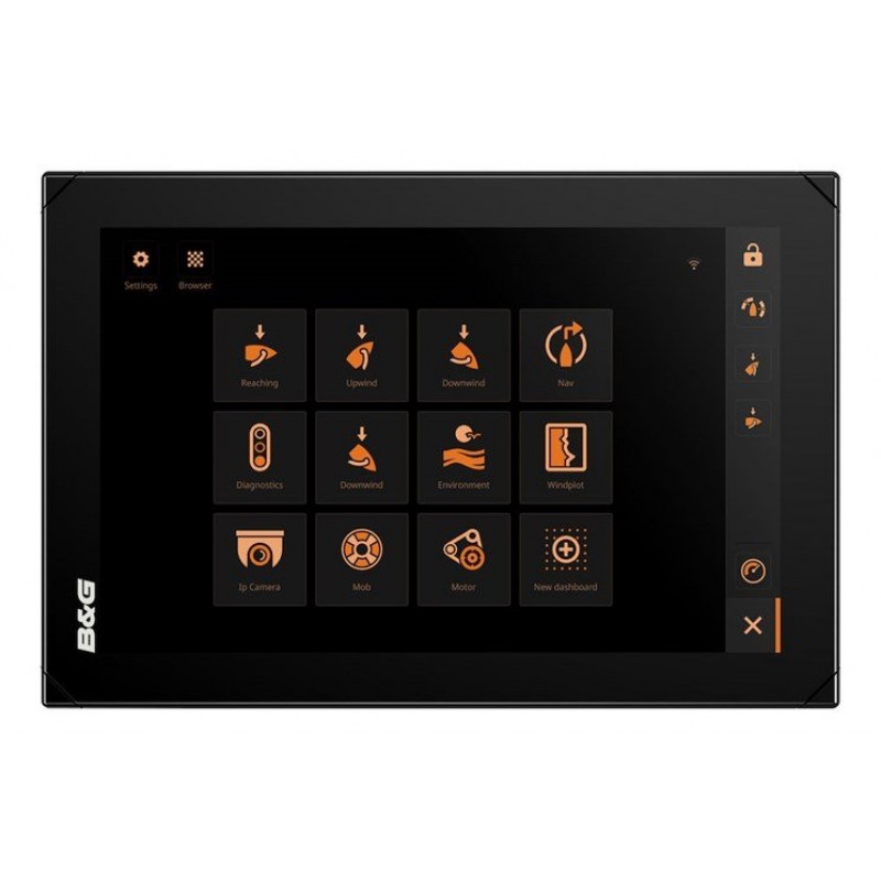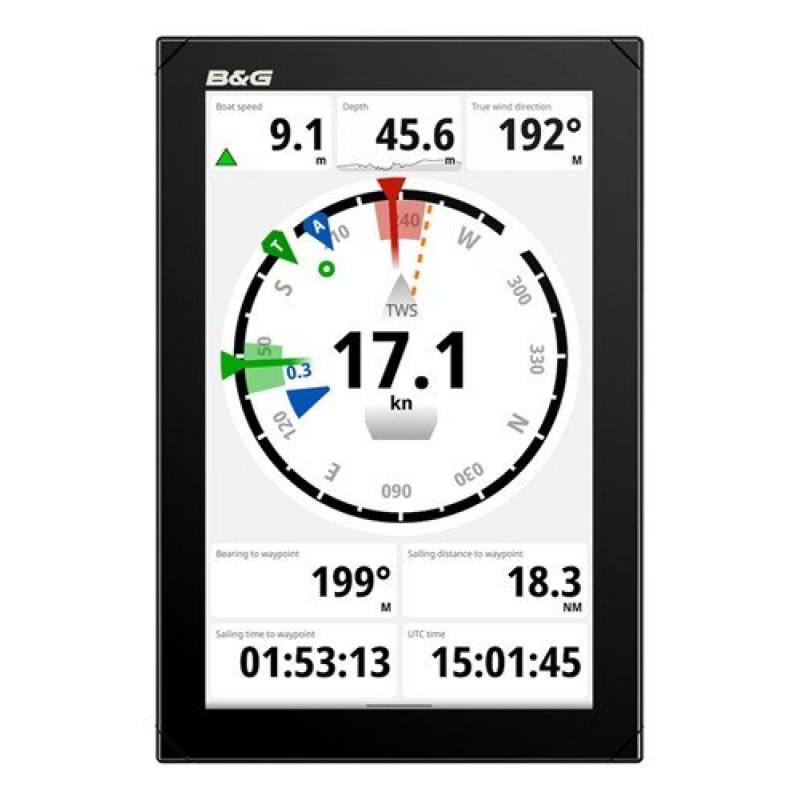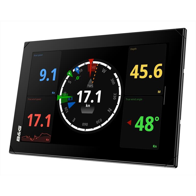 This all-in-one customisable display can be mounted in both portrait or landscape, whilst the easy to use drag & drop editor allows full customisation with a wide choice of graphical gauges, SailSteer™, tank levels, digital data, IP camera views, histograms and images. With this, you have the freedom to select the data, visualisation and set size and position that you want, or you can simply choose from a choice of pre-selected built-in B&G dashboards and templates.