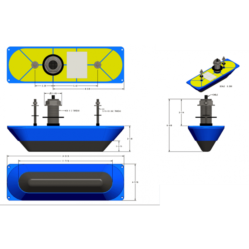 - Stainless steel transducer supports through-hull mounting