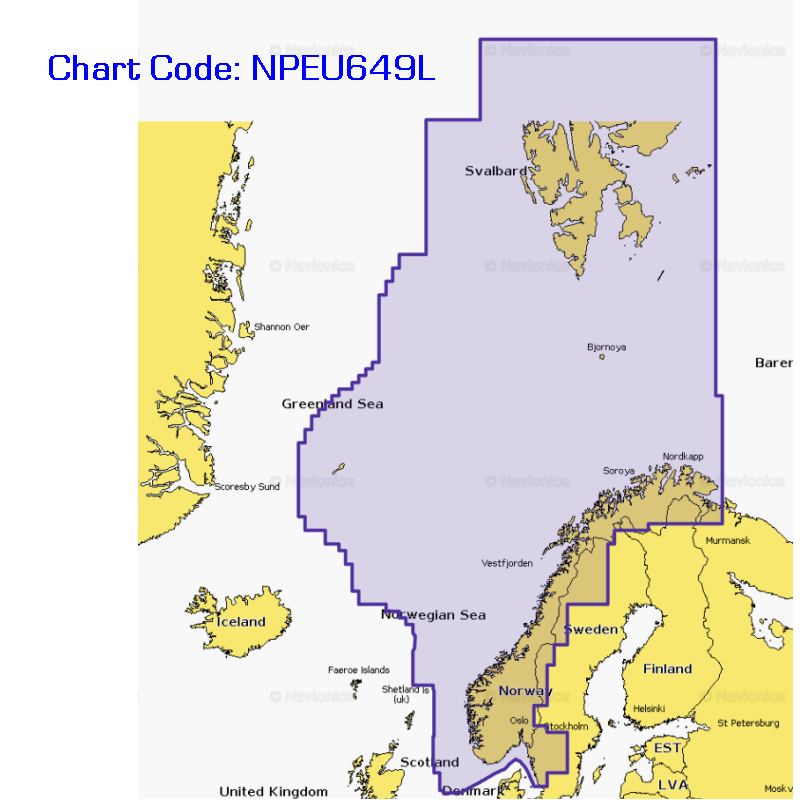 Coverage includes the Oslofjord; the Sognefjord; the Vestfjorden; Jan Mayen Island; Svalbard; Lakes Mjøsa, Bandak, Kviteseidvatnet, Flåvatn and Norsjø and the Telemark Canal in Norway;