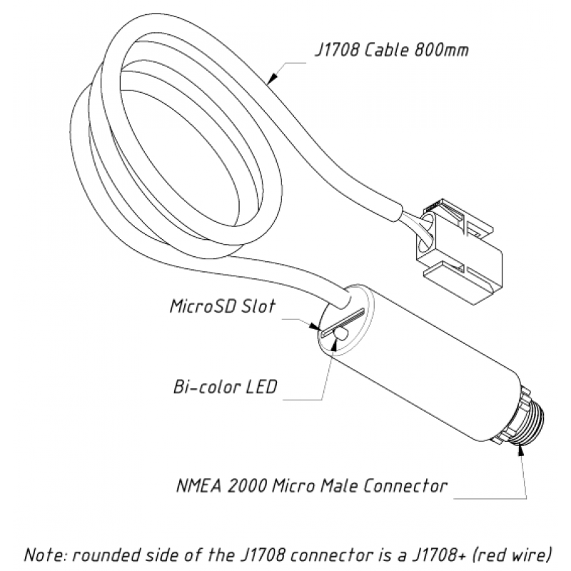 The Gateway is equipped with a slot for a MicroSD card, which can be used to configure its settings (loading a text file with the settings), retrieve the current configuration, update the Device firmware and record the data from the J1708 and NMEA 2000 interfaces for configuration and diagnosis of the Device. Features: