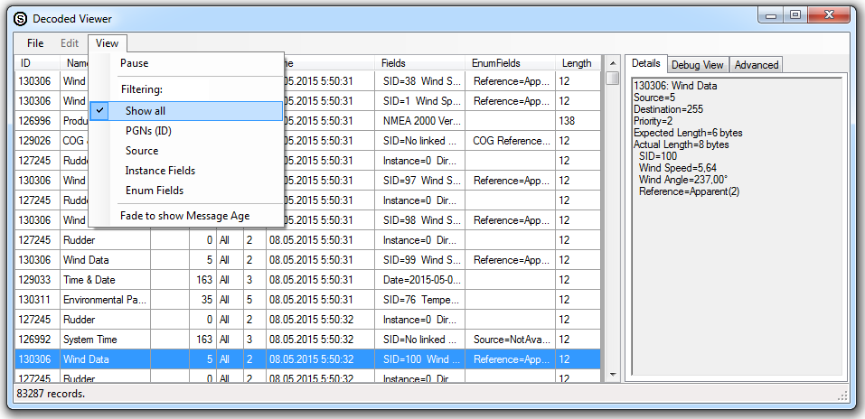 PC software can convert Voyage Recorder data to OpenSkipper, CanBoat and Signal K formats. Marine electronics specialists can diagnose N2K problems using free and open source OpenSkipper. This product can "replay" NMEA 2000 recordings and has an excellent log viewer. You may load Voyage Recorder data to OpenSkipper and decode all N2K messages.