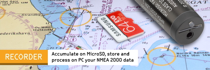 The Recorder writes all network data into the memory card. It does not analyze the data, leaving that work for the software application that runs on personal computer. Because of that, the Recorder supports all message types broadcast through the network by any other equipment present on the vessel's network. See the list of data types already supported!